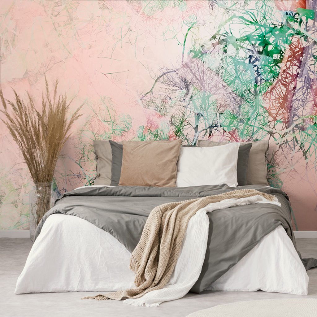 Il motivo astratto dei rami porta un'atmosfera unica nel tuo ambiente. Linee sottili e accenti di colore si intrecciano con toni pastello, creando un'impressione armoniosa. La combinazione di verde, rosa e blu dona freschezza e leggerezza agli spazi. Questa carta da parati è ideale per interni moderni e classici, dove sottolinea uno stile personale. Grazie al materiale di alta qualità e alla stampa, garantisce una lunga durata e una facile applicazione.