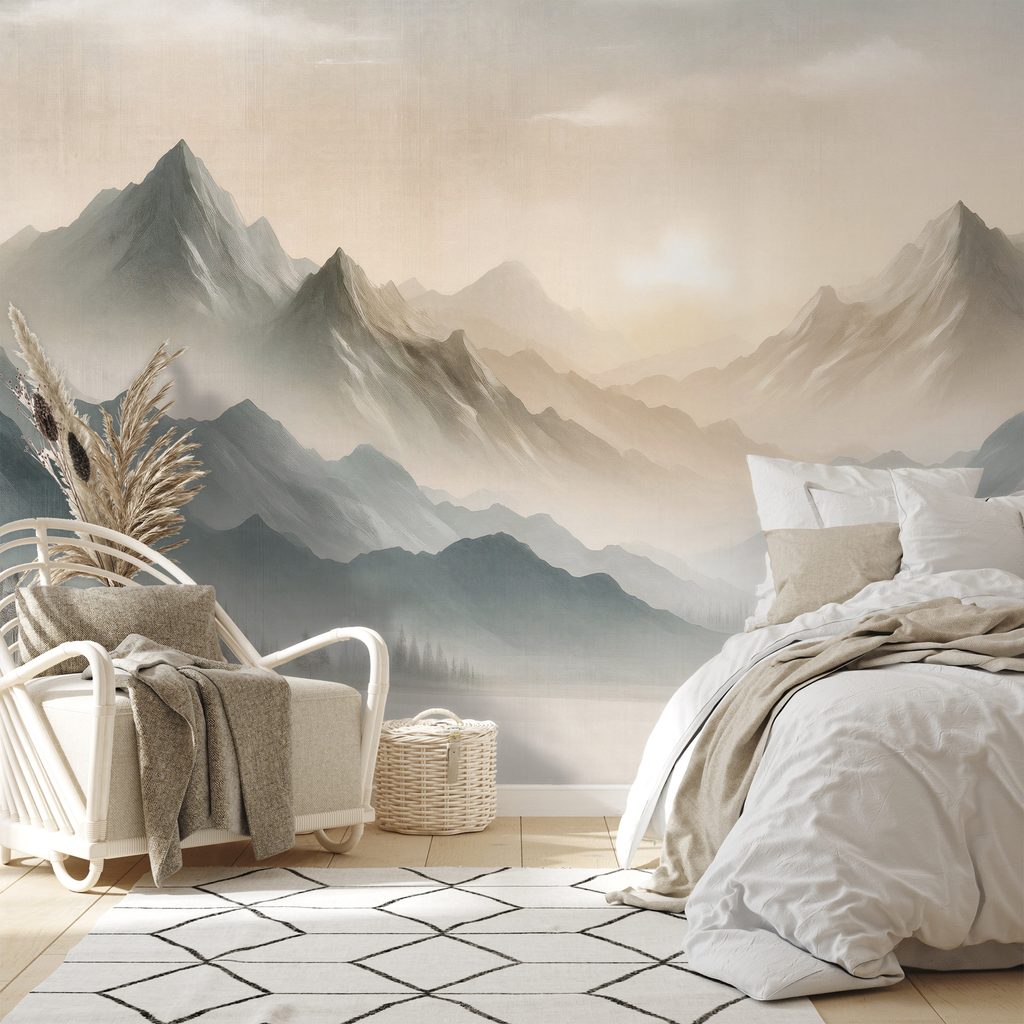 La carta da parati con panorama montano avvolto nella nebbia trasferisce un'atmosfera serena della natura nel vostro interno. Il motivo ritrae maestose montagne avvolte nella nebbia, con delicati dettagli e sagome di alberi in primo piano. Le sfumature di grigio e beige creano un'impressione armoniosa e rilassante. Ideale per il soggiorno o la camera da letto, dove sottolinea l'accoglienza e l'eleganza dello spazio. La carta da parati è realizzata con materiali di alta qualità, che garantiscono una lunga durata e una facile applicazione.