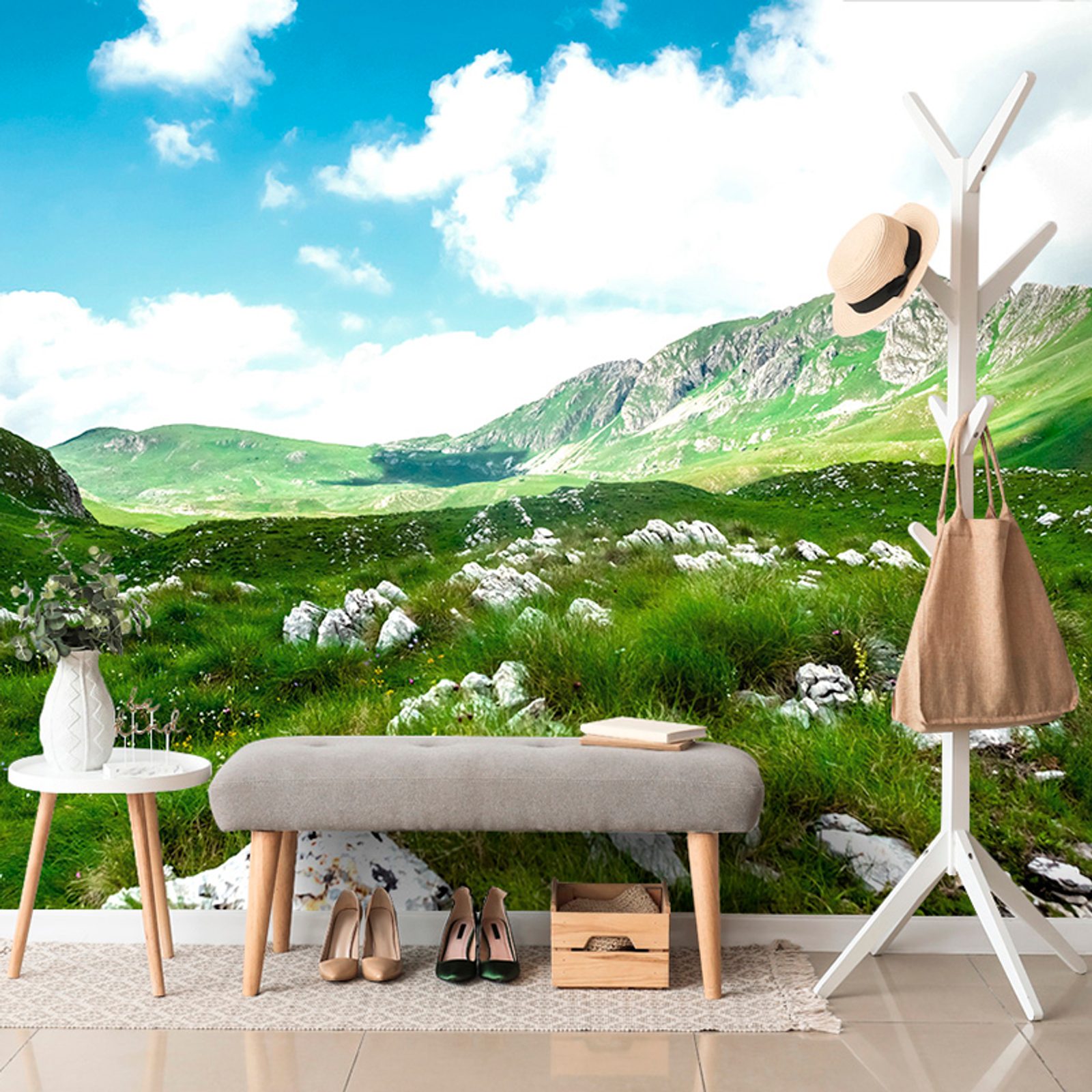 La carta da parati del valle in Montenegro presenta una meravigliosa scena naturale con ampie praterie verdi e maestose montagne sullo sfondo. Nell'immagine si possono notare anche rocce e una vegetazione variegata, che conferiscono autenticità al motivo. I colori principali sono il verde fresco e l'azzurro, creando un'atmosfera rilassante e armoniosa. Questa carta da parati è perfetta per ravvivare gli interni e portare la bellezza della natura nella tua casa. La qualità di stampa garantisce colori vivaci e una lunga durata, rendendola un'ottima scelta per ogni stanza.