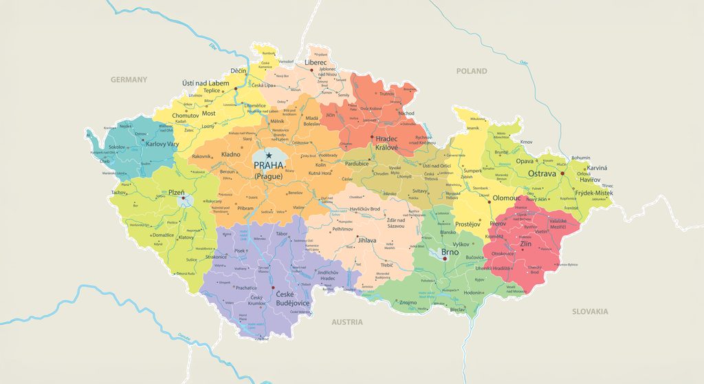 STAMPA SU TELA – MAPPA GRIGIA ELEGANTE DELLA REPUBBLICA CECA - QUADRI MAPPE - STAMPE E QUADRI