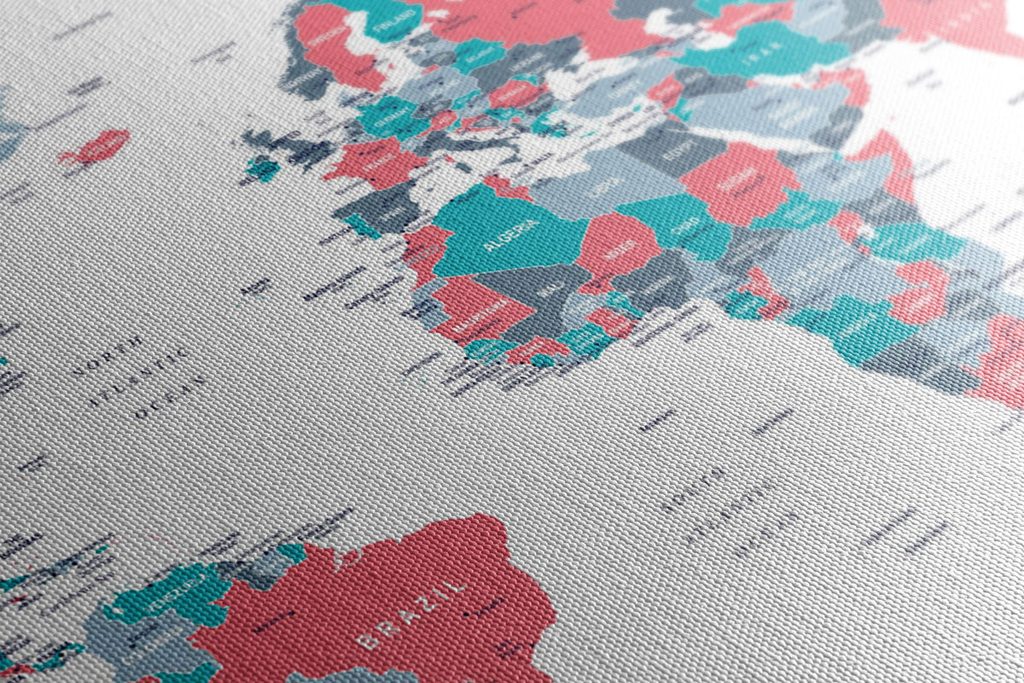 Quadro su tela in sughero con motivo della mappa del mondo porta un tocco unico nel vostro interno. I colori pastello, come il rosa e l'azzurro, creano un'atmosfera moderna e fresca che ravviva ogni spazio. La mappa è dettagliatamente elaborata, rendendola non solo un elemento decorativo, ma anche un pratico aiuto per pianificare viaggi. Ideale per gli amanti dei viaggi o come elemento interessante per lo studio o il soggiorno. Il quadro è realizzato con materiali di alta qualità che garantiscono una lunga durata e una facile manutenzione.
